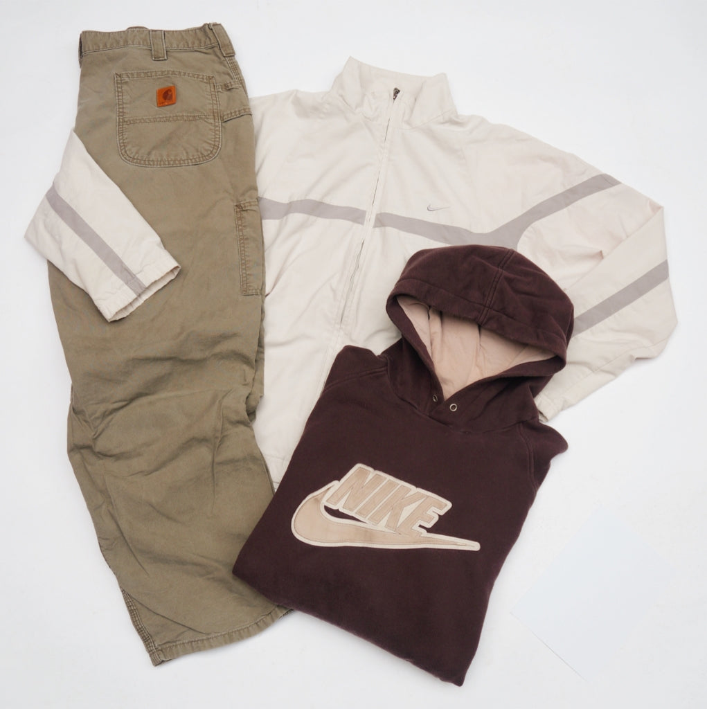 Each box contains a curated assortment of various vintage pieces from the 80’s, 90’s and 00’s. Sportswear, workwear, designer and loads more. Just pick your sizes and we’ll do the rest.